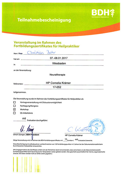 2017 Neuraltherapie nach Huneke (Wiesbaden)